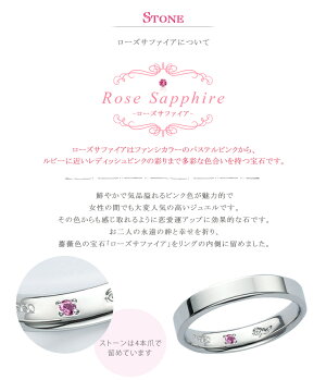鮮やかで気品あふれるピンク色が魅力的で、女性の間でも大変人気の高いジュエルです。お二人の永遠の絆と幸せを祈り、薔薇色の宝石「ローズサファイア」をリングの内側に留めました。受注製作品の為、2~3週間程お時間をいただきます。ご了承下さい。